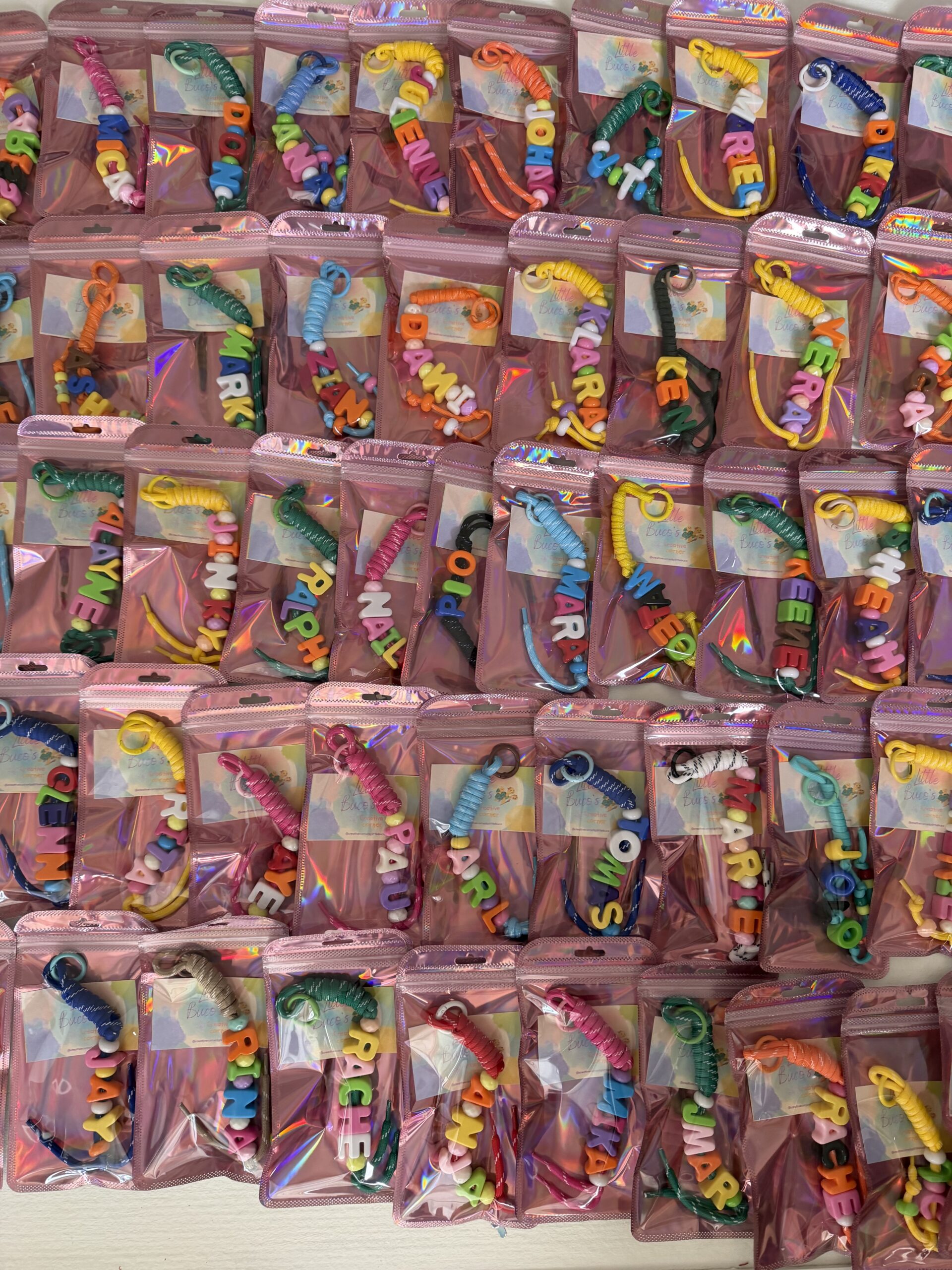 Our personalized bag tags! Funky fun and colorful, your kids would love to have it hang around their bags all day, everyday. Due to limited space, we can only personalize up to 8 LETTERS.
