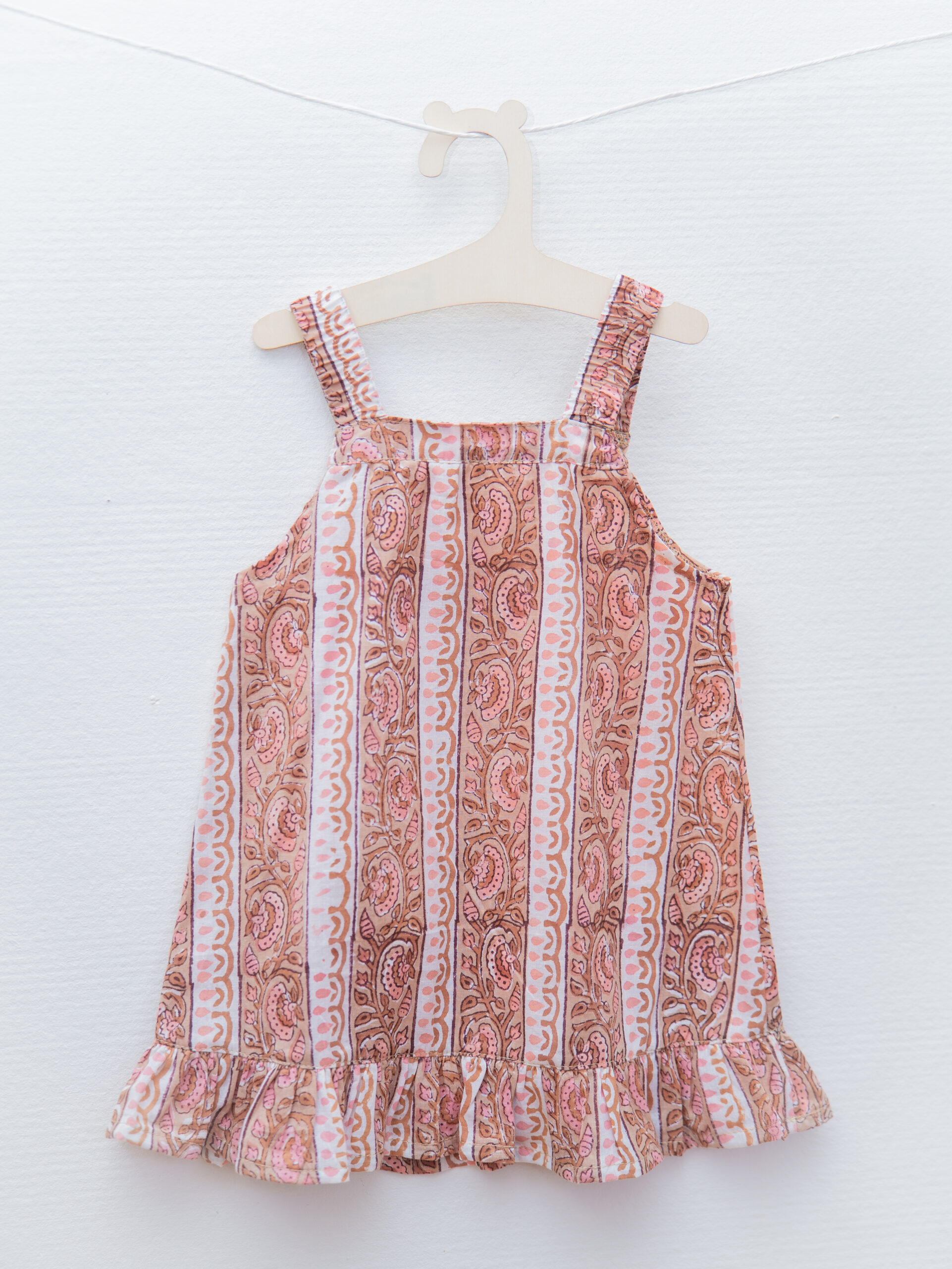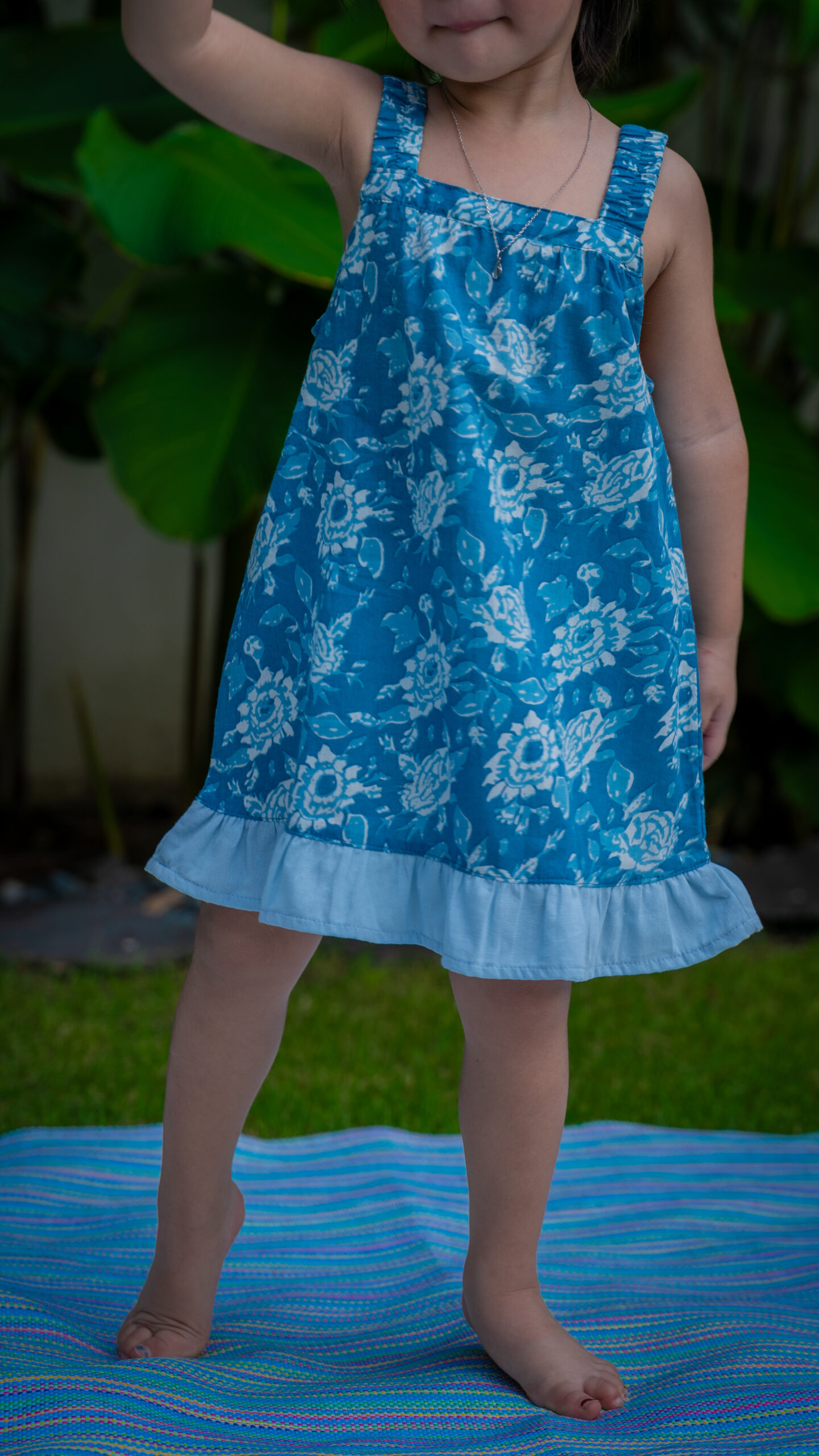 Sleeveless a-line floral dress with quaint ruffle design at the bottom. Simple and sweet for everyday wear.