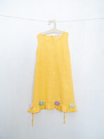 Yellow Linen Maxi Dress with Crochet Flowers